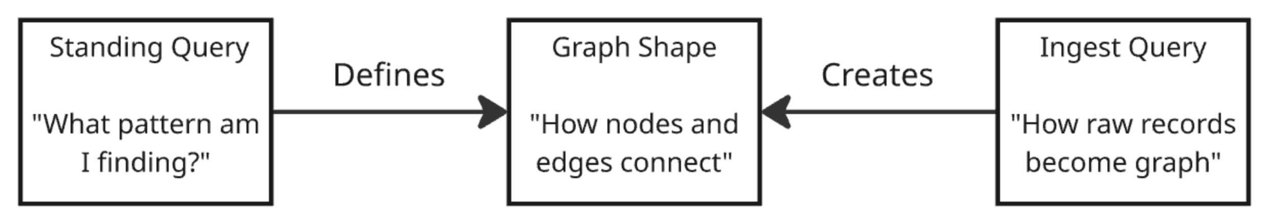 This inversion exists because the ingest queries and standing queries are tightly coupled to the shape of the graph. If the ingest query changes, the graph changes. If the standing query needs to change, then it is likely the graph will need to change, which means the ingest query will need to change.